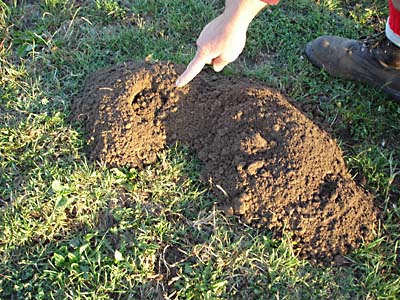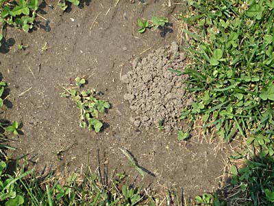 Tiny fresh plug in a large old mound. Good opportunity to trap.